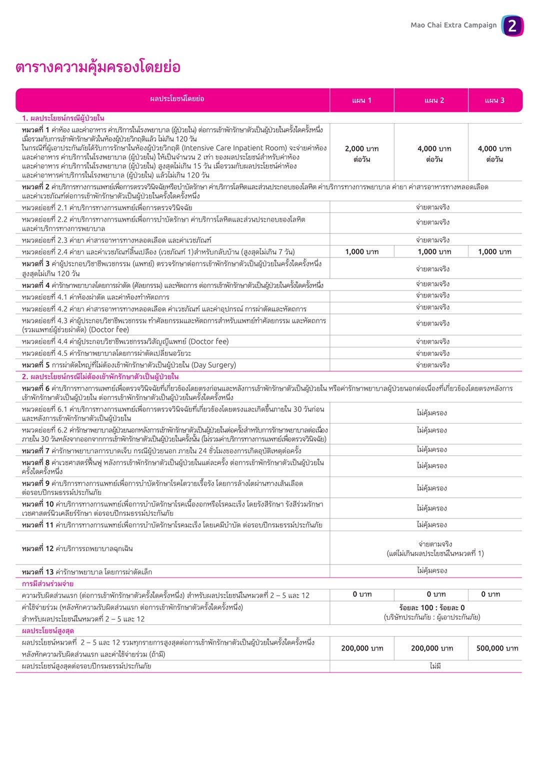 2. คุ้มครองค่ารักษาเหมาจ่ายครั้งละ 200,000 บาท