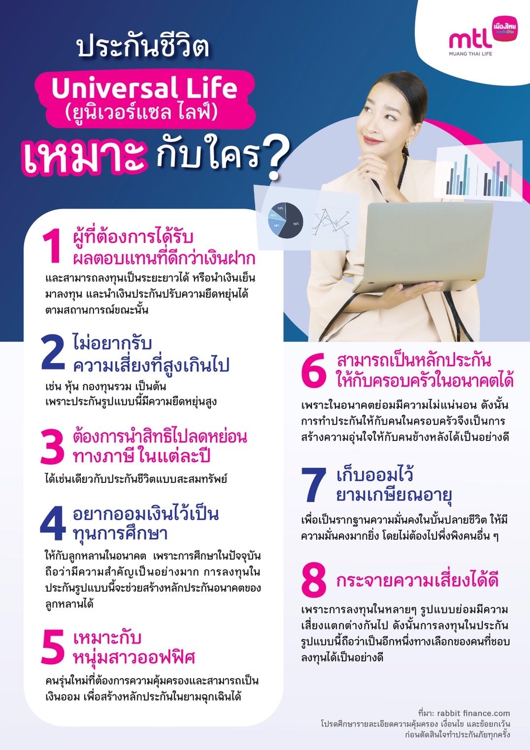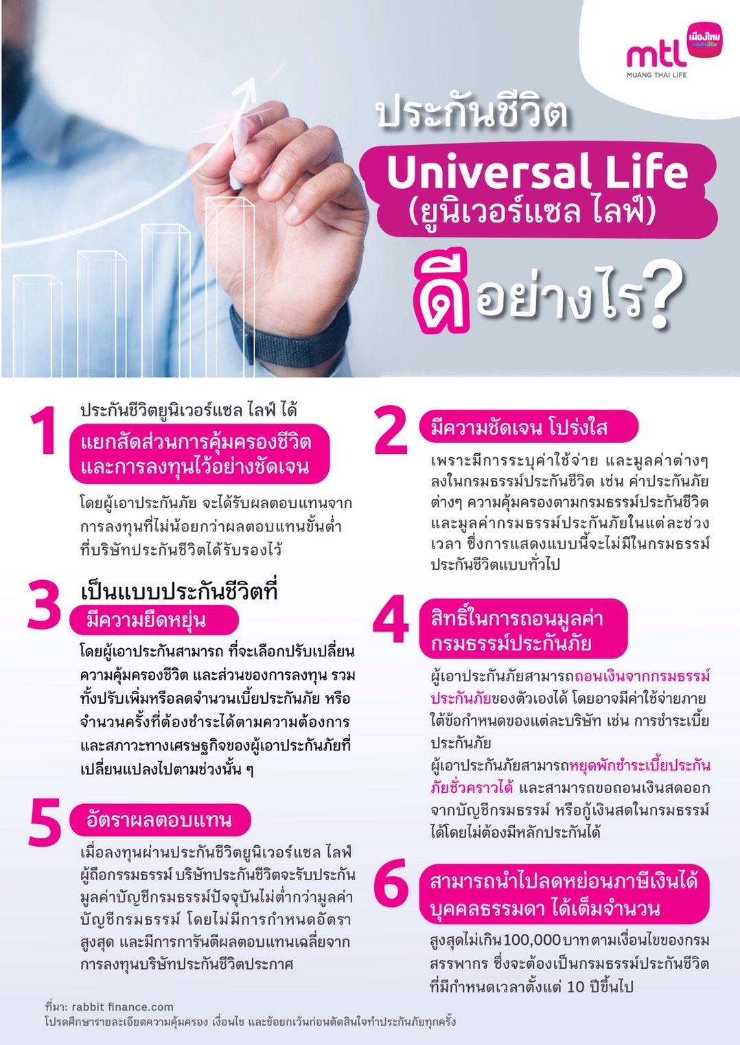 มีความยืดหยุ่น สามารถชำระเบี้ยประกันภัยส่วนที่เป็นเงินออมเพิ่มเติม ถอนเงินลงทุนออกบางส่วนหรือหยุดพักชำระเบี้ยประกันภัยได้
