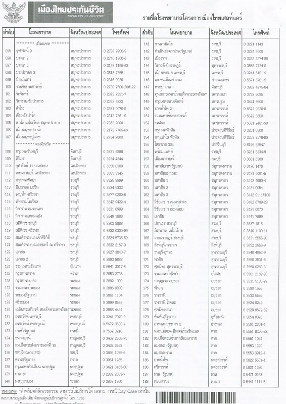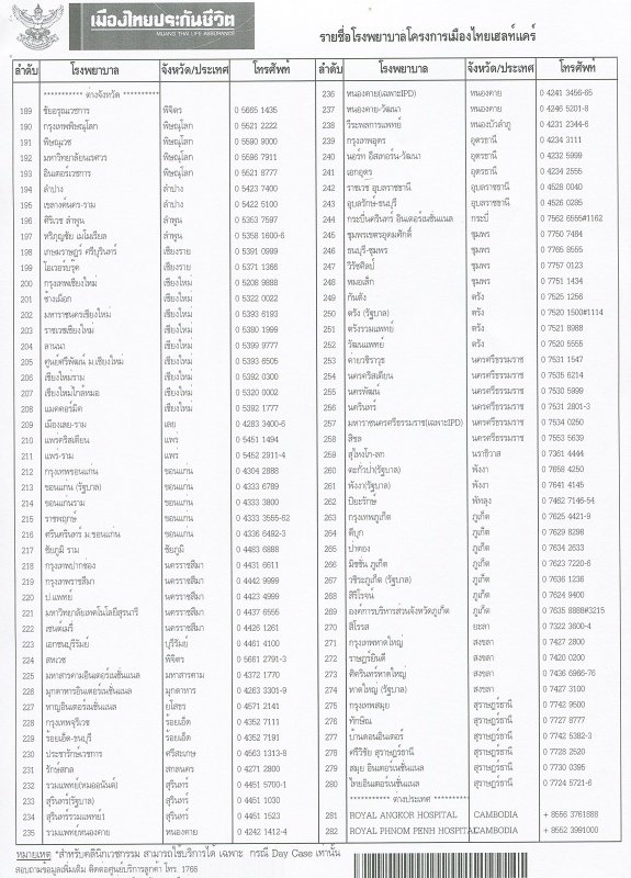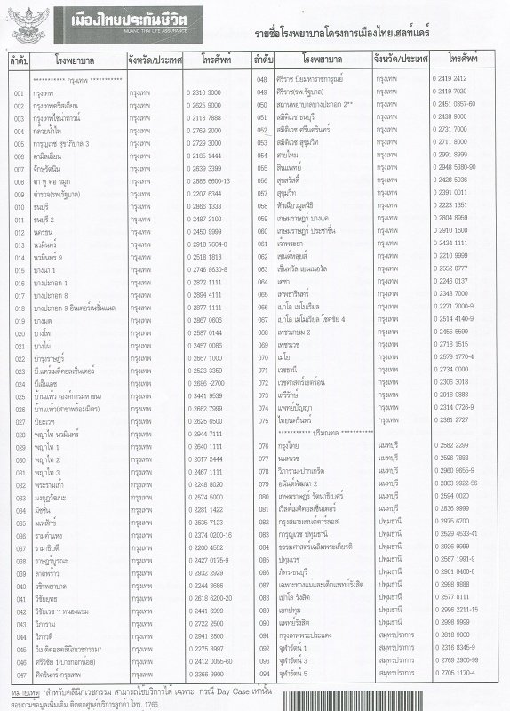 รายชื่อโรงพยาบาลในเครือ - ใช้สิทธิ์แฟกซ์เคลมไม่ต้องสำรองจ่าย